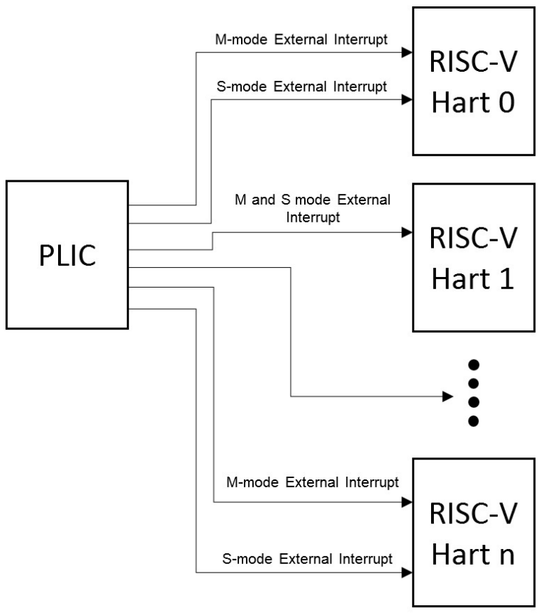 PLIC如何为上下文(Hart和特权模式)组织中断超出了RISC-V PLIC规范的范围,但必须在供应商的PLIC规范中进行规范说明。